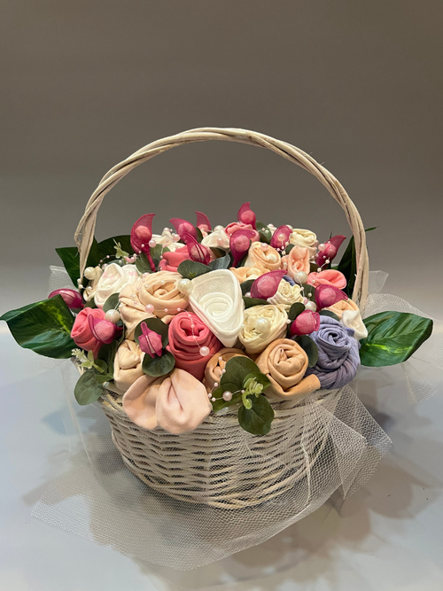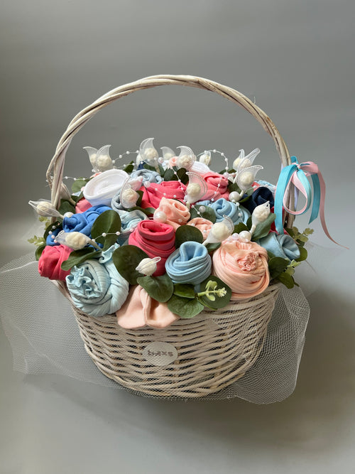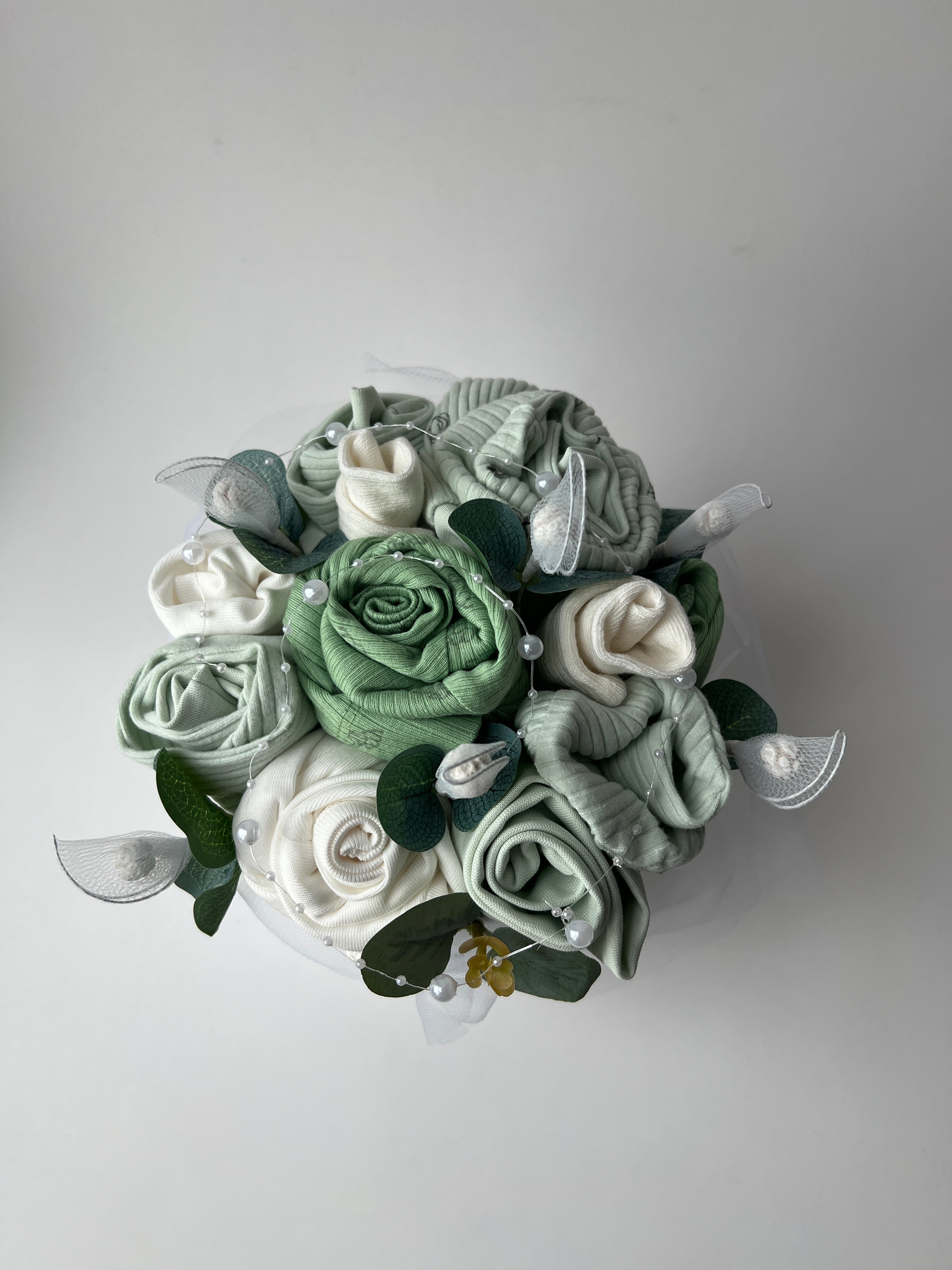Bebek kıyafetlerinden hazırlanan özel çiçek buketleri